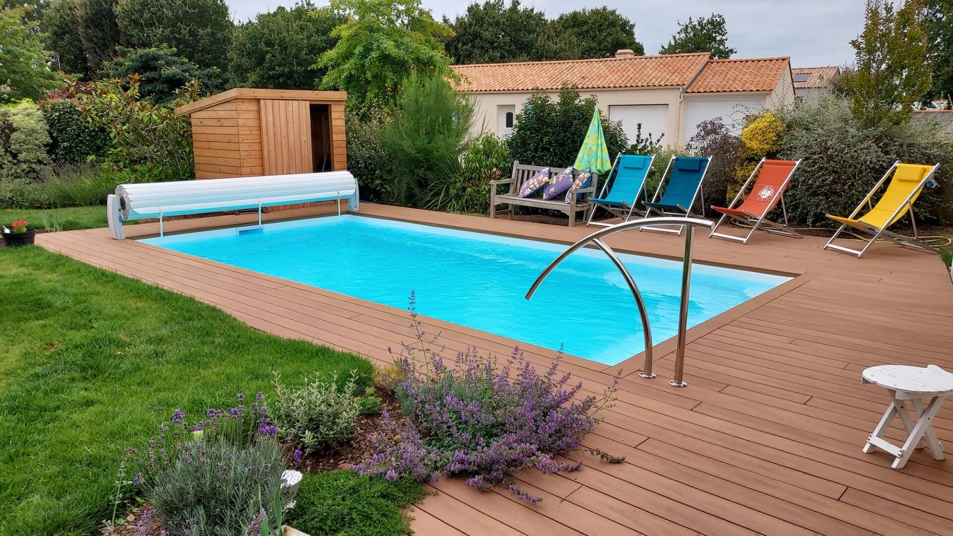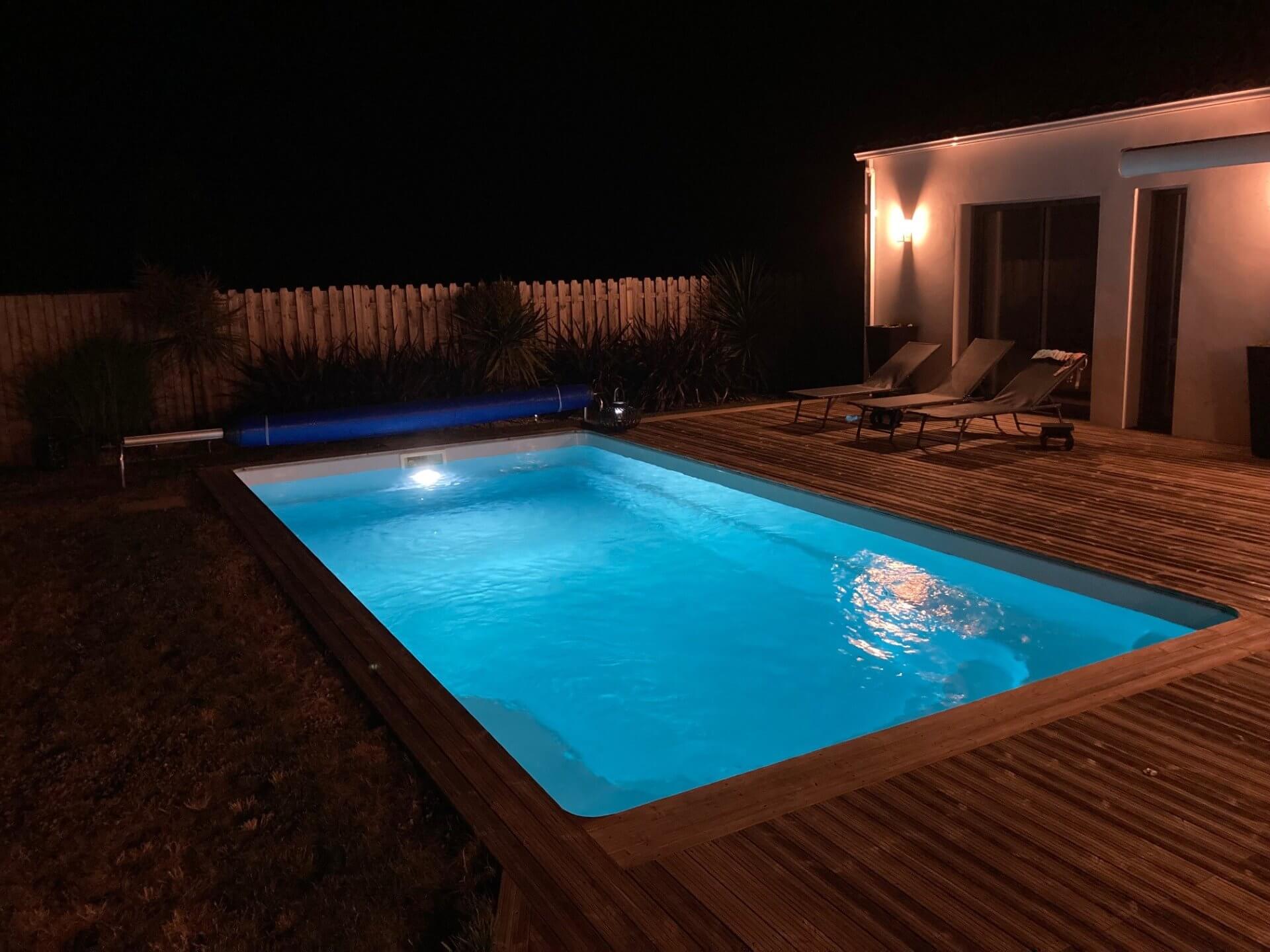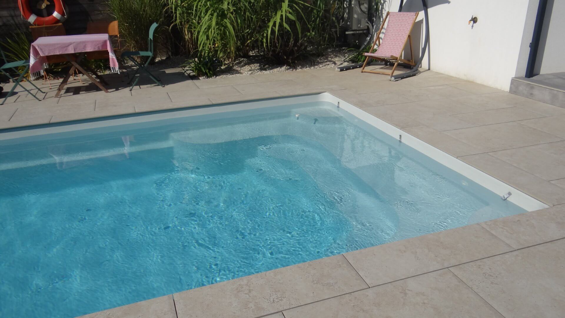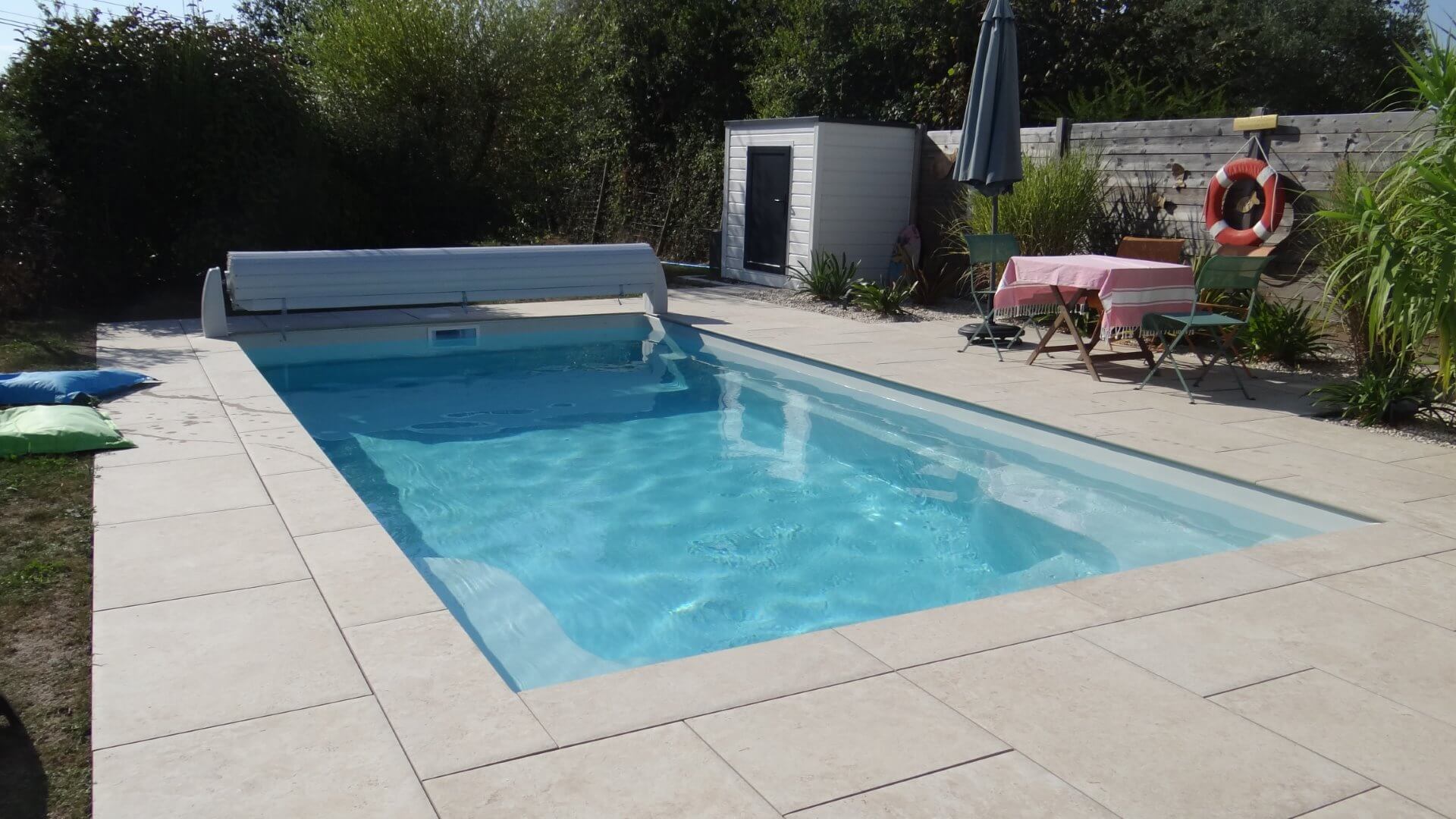 Sa forme et son escalier avec banquette vous apporteront la convivialité d’un grand bassin.