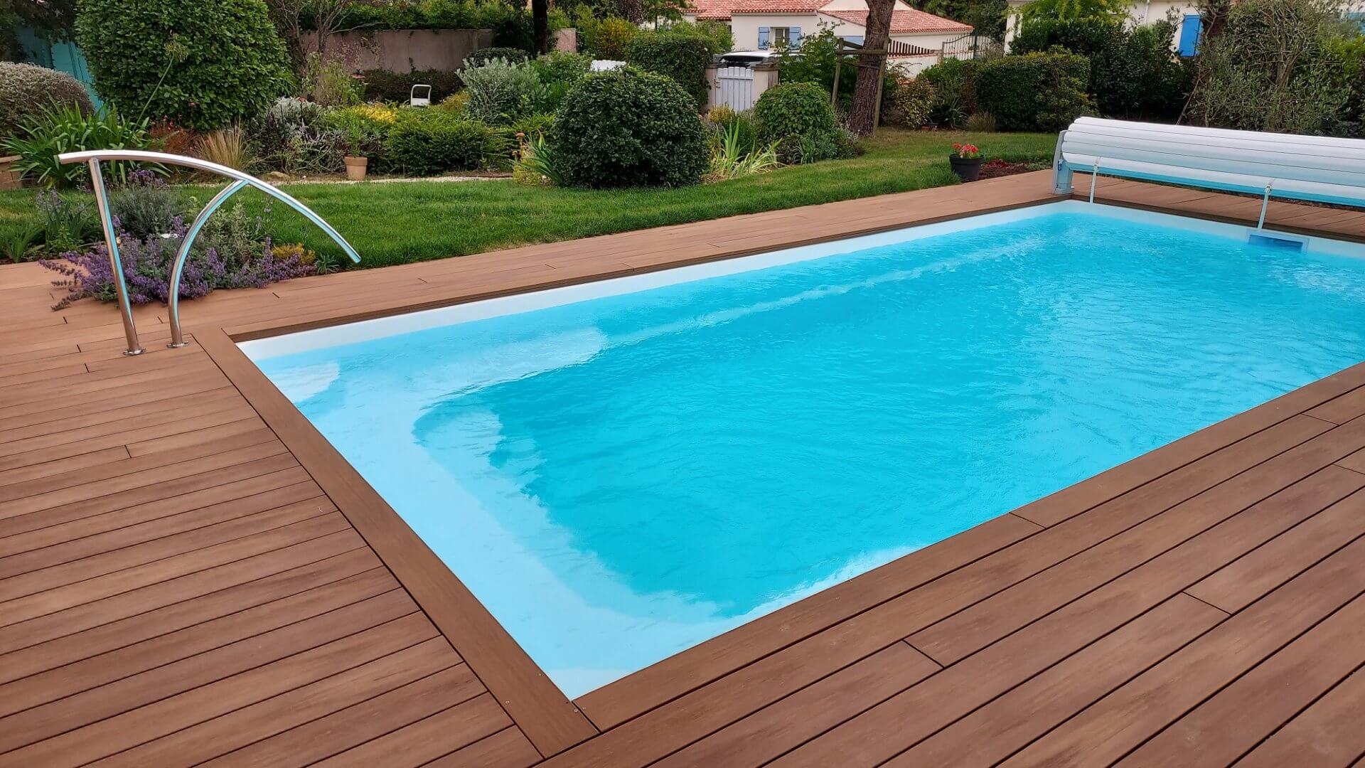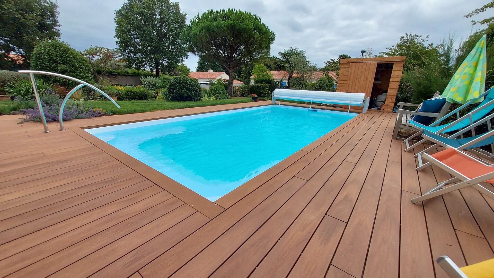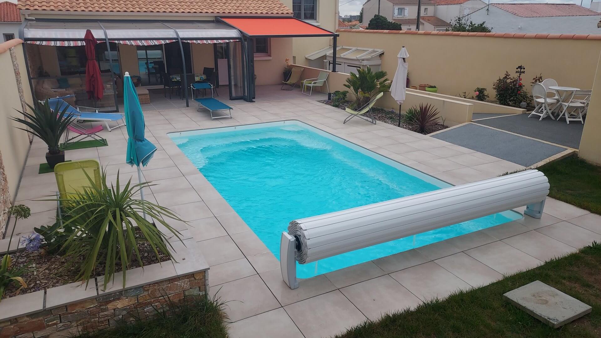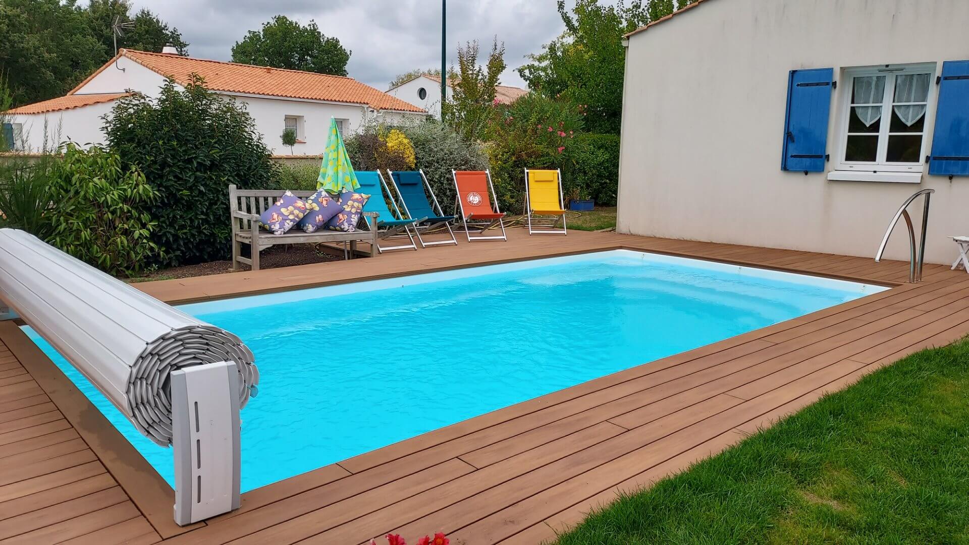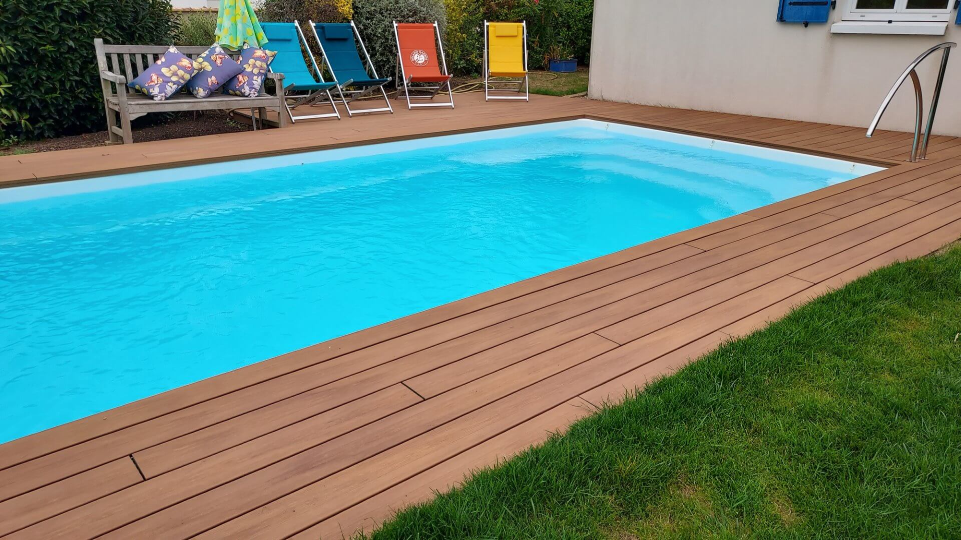 Sa forme et son escalier avec banquette vous apporteront la convivialité d’un grand bassin.