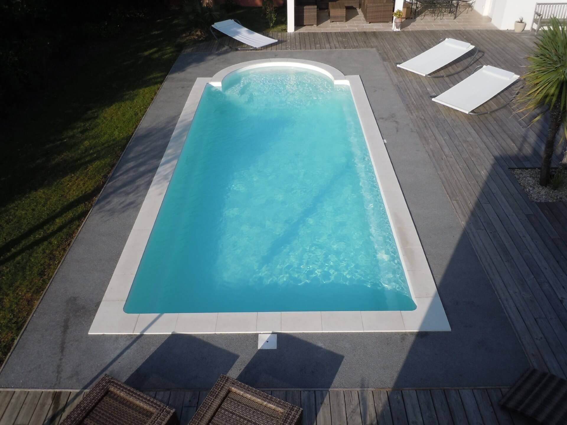 Que vous ayez envie de nager ou de vous amuser, vous trouverez dans notre modèle SAUZAIE un volume propice pour répondre à vos attentes. Elle pourra même se transformer en véritable terrain de jeux. La farniente n’étant pas en reste, l’escalier roman vous accueillera pour vous reposer ou pour supporter l’équipe de votre choix.